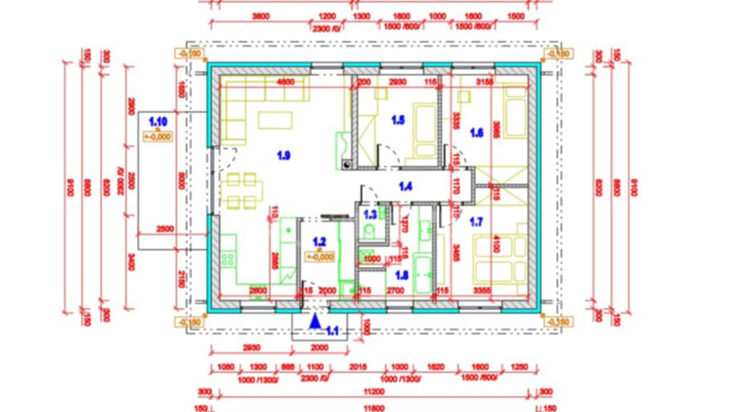 - Izolácie: 150 mm podlaha, 450 mm strop a 200 mm pre fasádu.